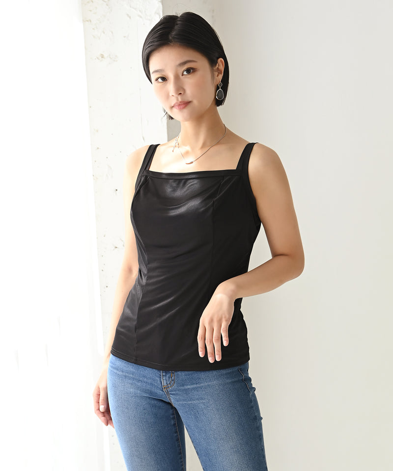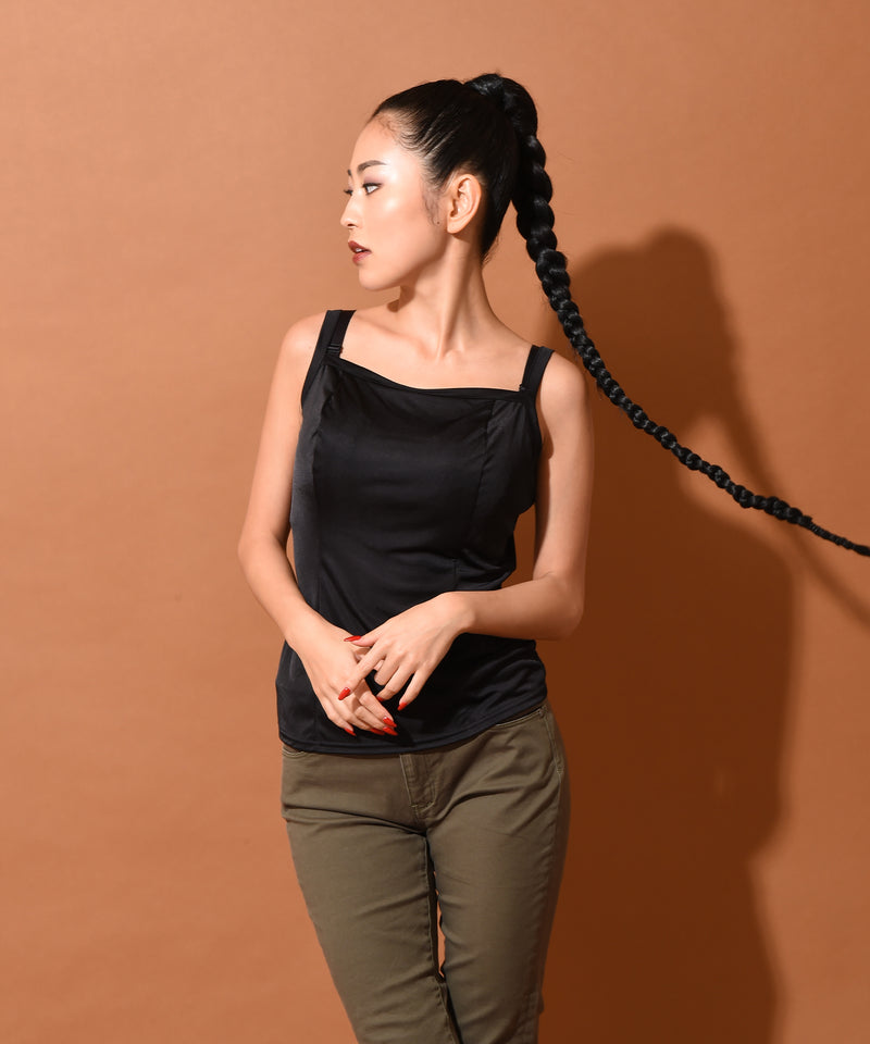 シンプルで使い勝手の良いインナーキャミソール。谷間が見えない設計で、デコルテをすっきり美しく見せます。肩ひもは下着のストラップも隠れる幅にデザインし、後ろの金具で長さも調整が可能に。肌あたりが良くストレッチの効いたサテン生地で、オールシーズン快適にお過ごしいただけます。1枚あれば大活躍のアイテムです。