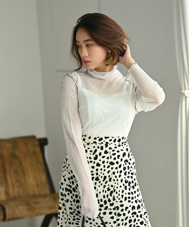 【DESIGN】トレンド感とこなれた印象を与えてくれるシアートップス。ネックラインとショルダー部分をメロウフリルにデザインすることで女性らしい印象に。【FUNCTION】立体感を構成するバストのカットラインが目立ちづらいようあえてニットで編み立てました。【FABRIC】さらっとした質感で清涼感のある着心地に。肌に直接あたる素材だからこそ素材に拘りなめらかなレーヨンをメインとし、強度のあるナイロン糸で構成。【STYLING】パンツと合わせればモードに。スカートとあわせればレディライクにも。あらゆるコーディネートに合わせやすい万能なトップスです。【ATTENTION】本商品は予約商品です。通常商品と予約商品を同時にご購入いただいた場合は、商品はすべてそろい次第の発送となりますので、ご注意ください。4月中旬発送予定