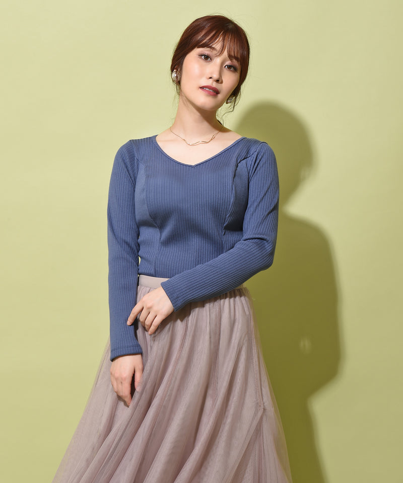 人気のワイドテレコカットソーから、オールシーズン着れるカラーが登場。ベーシックアイテムのリブカットソーは、1枚あればぐっとコーディネートの幅も広がります。表面にはブライト糸が使われている、エレガント見えするシャイニーリブ生地を使用。着心地もよい長袖カットソーは着回しの効く必須のアイテムです。※こちらのカットソーはワイドテレコカットソーと同アイテムです。 ■機能1HEART CLOSETの立体的な裁断でバストを丸く包み込みながらもアンダーバストからウエストはスッキリしたシルエットに。 ■機能2スッキリとしたVネックはデコルテを綺麗に見せ、胸元も覗きづらいカッティングに設計。■機能3縦リブのデザインでスタイルアップ。