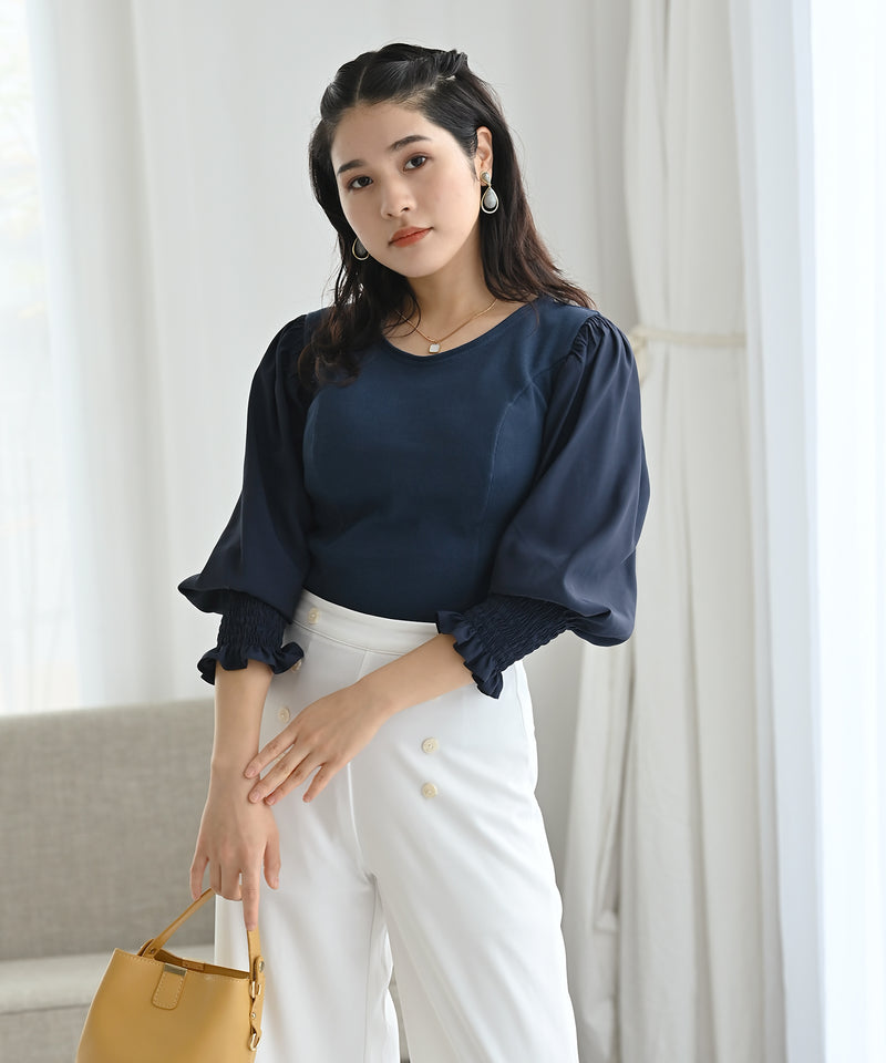 【DESIGN】 ふわっと空気を含んだシルエットが目を引くプルオーバー。膨らんだ袖デザインが二の腕をカバーしつつ、ふんわりとした華やかさを演出してくれます。シャーリングをほどこした袖口は腕に負担をかけず、フェミニンな印象も。季節や着こなしにあわせて袖丈をアレンジし、ロングシーズン楽しめる特別な1着。 【FABRIC】 身頃:コットンメインのしっかりとした風合いが特徴のリブ素材。下着が響きづらく伸縮性に富んだ生地で肌当たり優しくボディにフィットしてくれます。 袖:レーヨン100%ながらウォッシャブル、シワ防止加工を施した生地を使用。ハリととろみの絶妙なバランスのある生地感で構成したふんわりバルーンがお洒落のポイント。 【STYLING】 IN/OUTのどちらでも使い勝手のよい丈感。袖のシルエットを変化させながら、スカートと合わせてフェミニンに。デニムと合せてカジュアルダウンしたりとボトムを選ばない万能デザインです。 【ATTENTION】本商品は予約商品です。通常商品と予約商品を同時にご購入いただいた場合は、商品はすべてそろい次第の発送となりますので、ご注意ください。2月中旬発送予定