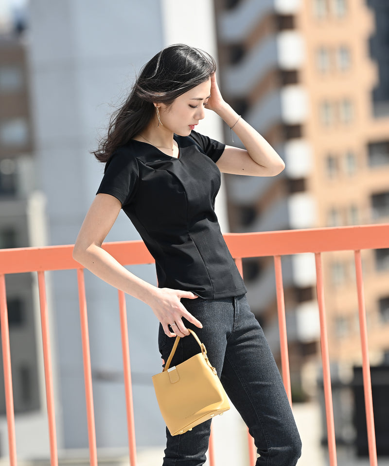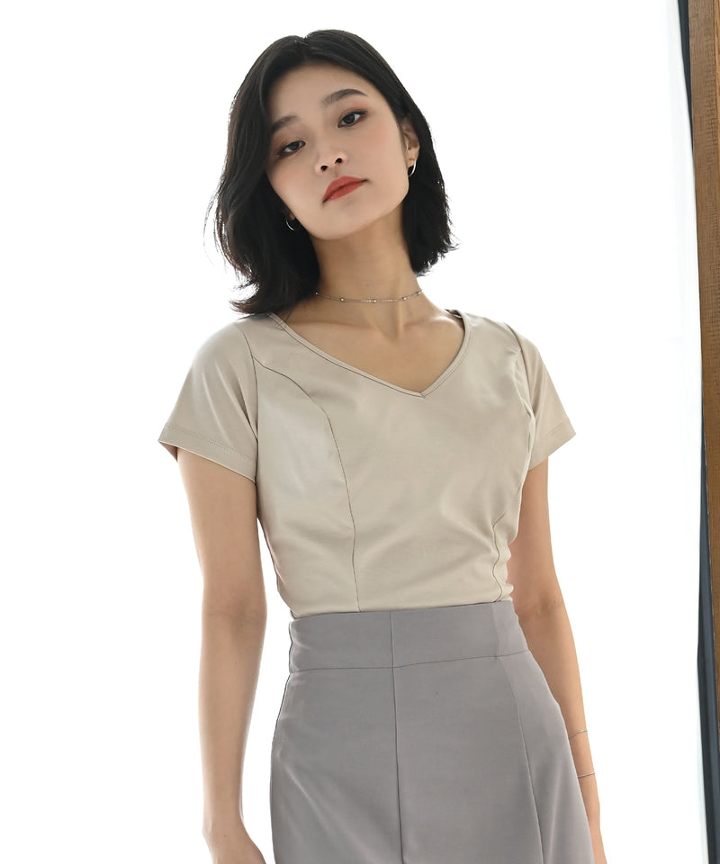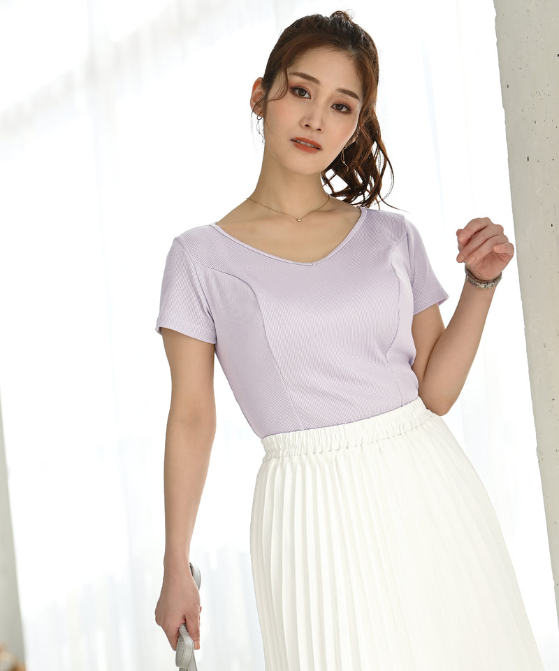 エレガントな光沢感を持つリブ素材のVネックカットソー。 シンプルで洗練されたデザインが、コーディネートの幅をぐっと広げます。肌当たりの良いコットンリブで着心地も快適に。ウォッシャブルな国産素材なので、ご家庭でのお洗濯も可能です。インでもアウトでも着やすい丈感で、コーディネートも合わせやすい3色を揃えました。■機能1HEART CLOSETの立体的な裁断でバストを丸く包み込みながらもアンダーバストからウエストはスッキリしたシルエットに。■機能2スッキリとしたVネックはデコルテを綺麗に見せ、胸元も覗きづらいカッティングに設計。