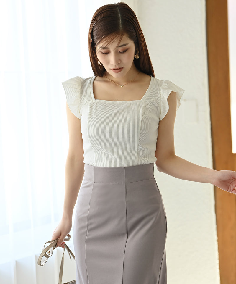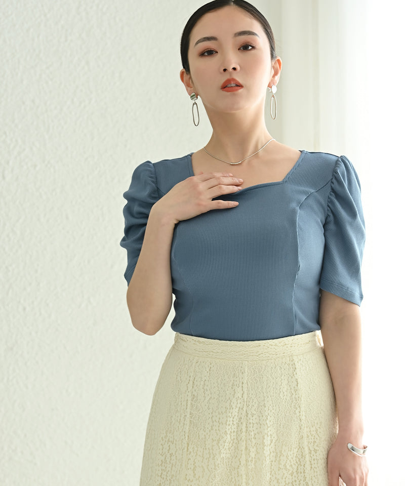エレガントな光沢感を持つリブ素材のカットソー。肌触りの良いコットンリブで、通気性も良く快適にお過ごしいただけます。程よくあいたスクエアネックはデコルテをすっきり美しく見せ、こなれ感のある印象に。シンプルで洗練されたデザインが、コーディネートの幅をぐっと広げてくれます。インでもアウトでも着やすい丈感で、夏らしい3色を揃えました。■機能1HEART CLOSETの立体的な裁断でバストを丸く包み込みながらもアンダーバストからウエストはスッキリしたシルエット。 ■機能2ネックラインは下着のストラップや胸元が除きづらい広さに設計。■機能3スリーブのギャザーは肩幅を目立たせず、控えめで絶妙なニュアンス感を演出するデザインに。