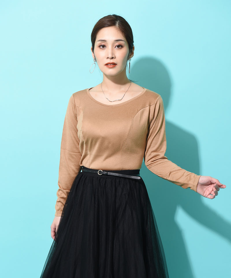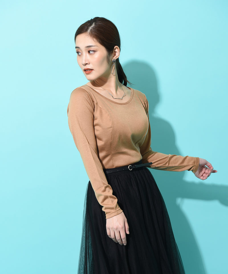 コーディネートの幅を一気に広げてくれる定番のUネックのカットソー。前かがみになっても胸元が見えない上品なカッティングに設計。優雅な光沢のある素材なのでカジュアルにもエレガントに良くマッチし、日常で大活躍してくれます。
