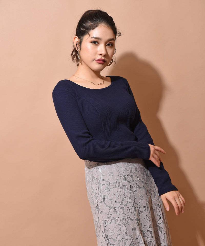 スカラップカッティングの長袖ニットソー。人気のスカラップカットソーを長袖にチェンジし、あたたかいニット素材で仕立てました。デコルテをすっきり美しく見せ、かがんでも谷間がのぞかない設計に。ボリューム感と軽量感を併せ持ったウール混素材で、冬でも暖かく快適にお過ごしいただけます。 ■機能1HEART CLOSETの立体的なシルエットでバストを丸く包み込みながらもアンダーバストからウエストはスッキリしたシルエットに。■機能2ふんわりとしたふくらみのある編立のリブウール素材で、寒い冬でも暖かく。■機能3襟ぐりはほどよいスカラップカッティングで、デコルテを美しく。