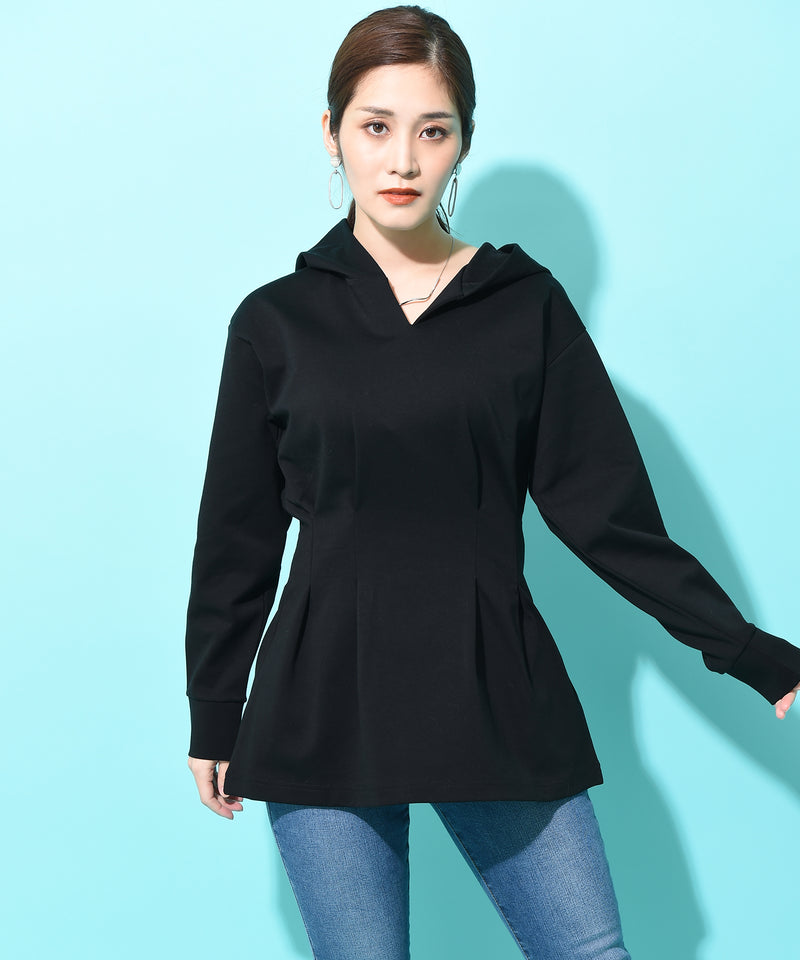 着心地の良いコットンポンチ素材のタックパーカー。チュニック丈で気になるヒップもカバーし、パンツに合わせやすい丈感にしました。ウエスト脇にはファスナーをつけ、着脱しやすくウエストラインはスッキリ見せ。おでかけにもリラックスウェアとしても、シーンを選ばず着ていただけます。 ■機能1HEART CLOSETの立体的な裁断でバストを丸く包み込みながらもアンダーバストからウエストはスッキリしたシルエットに。 ■機能2ウエスト脇にはファスナーをつけ、着脱しやすくウエストラインはスッキリ見せ。■機能3かがんでもバストが覗きにくく、デコルテをスッキリみせるVネック。