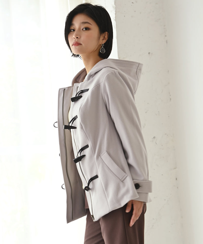 ハートクローゼットからダッフルコートが登場。軽くて暖かいウール100%のメルトン生地と、裏地には肌当たりの良い上質なキュプラ素材を使用。襟元までしっかりファスナーが閉まり、寒い季節も快適に過ごせます。ヒップが隠れる丈感で合わせるボトムスも選びやすく、クラシックなトグルボタンもポイント。ベーシックなアイテムながら1枚着るだけで目を引く、上質ワードローブです。 ■機能1HEART CLOSETの立体的な裁断でバストを丸く包み込みながらもアンダーバストからウエストはすっきりとSTYLE UPする形状に仕上げました。 ■機能2両サイドにはポケットをつけ、ユーティリティもプラス。■機能3前身頃はファスナーで開閉ができ、襟元まで閉まり暖かい仕様に。