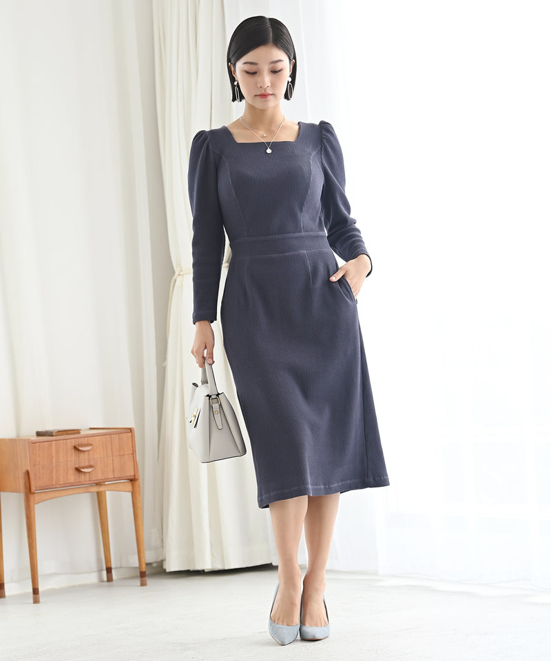 ワッフル素材ならではの表面感で、こなれた抜け感と上品さを持つワンピース。 肩にはニュアンス感のあるギャザーディテール。ウエストはハイウエスト切替で華奢見え効果をだし、 バックにはゴムを入れ幅広いうさらに着心地の良さもプラス。フィットシルエットでありながら、カットソー生地で仕上げることで抜群の着心地の良さを持つワンピースに仕立てました。 アウターのライダースやダウン、コートなどとの相性もよく、 通年着れる万能アイテムです。■機能1HEART CLOSETの立体的な裁断でバストを丸く包み込みながらもアンダーバストからウエストはすっきりとSTYLE UPする形状に。 ■機能2切替は胸の大きな女性の体に合せ、切替がバストにのらず、間延びしづらい絶妙な位置に。■機能3ウエストバックにゴムをいれ幅広いウエストサイズの方にお召いただける設計に。■機能4両サイドにはポケットを付け、ユーティリティーをプラス。