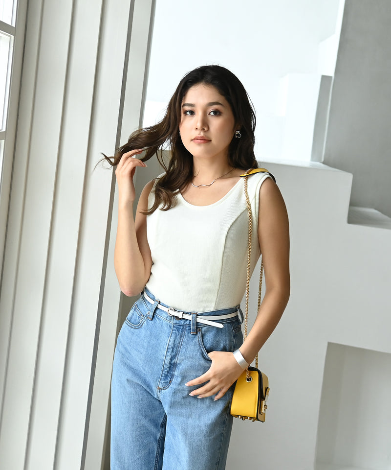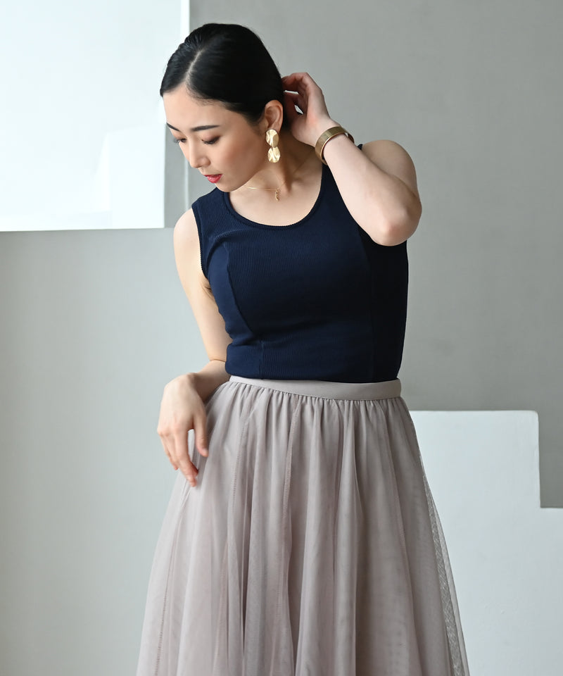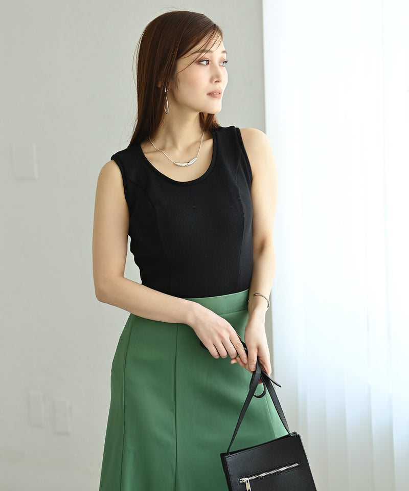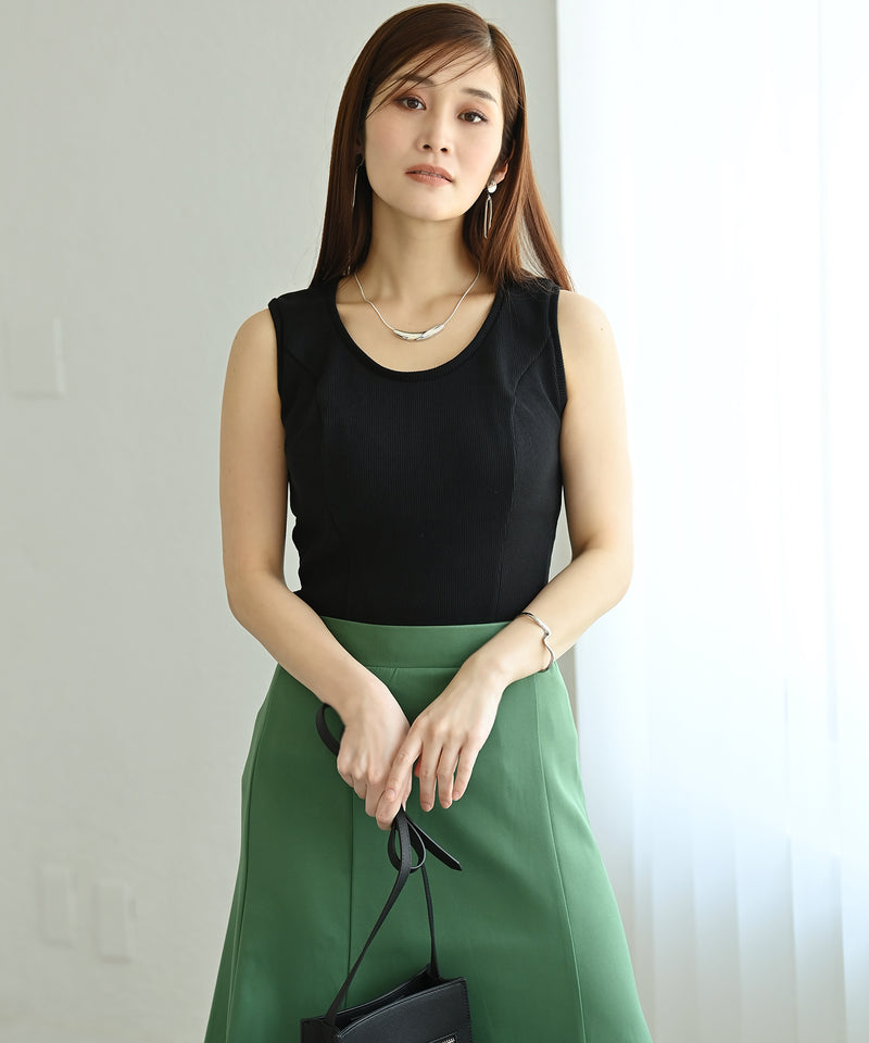 シンプルなデザインで、使い勝手の良いノースリーブのカットソー。綿混のリブ素材で、肌に程よくフィットし夏を快適に過ごせます。少し厚めの生地感で、下着のラインが響きづらいのもポイント。定番のカラーだからこそ、1着は持っていたいアイテムです。 ■機能1HEART CLOSETの立体的な形状でバストを丸く包み込みながらも、アンダーバストからウエストはスッキリしたシルエットに。■機能2デコルテが美しくみえながらも、胸元が除きづらいVネックライン。■機能3アームホールを脇高設計に施し、下着が脇から除きづらいデザイン。