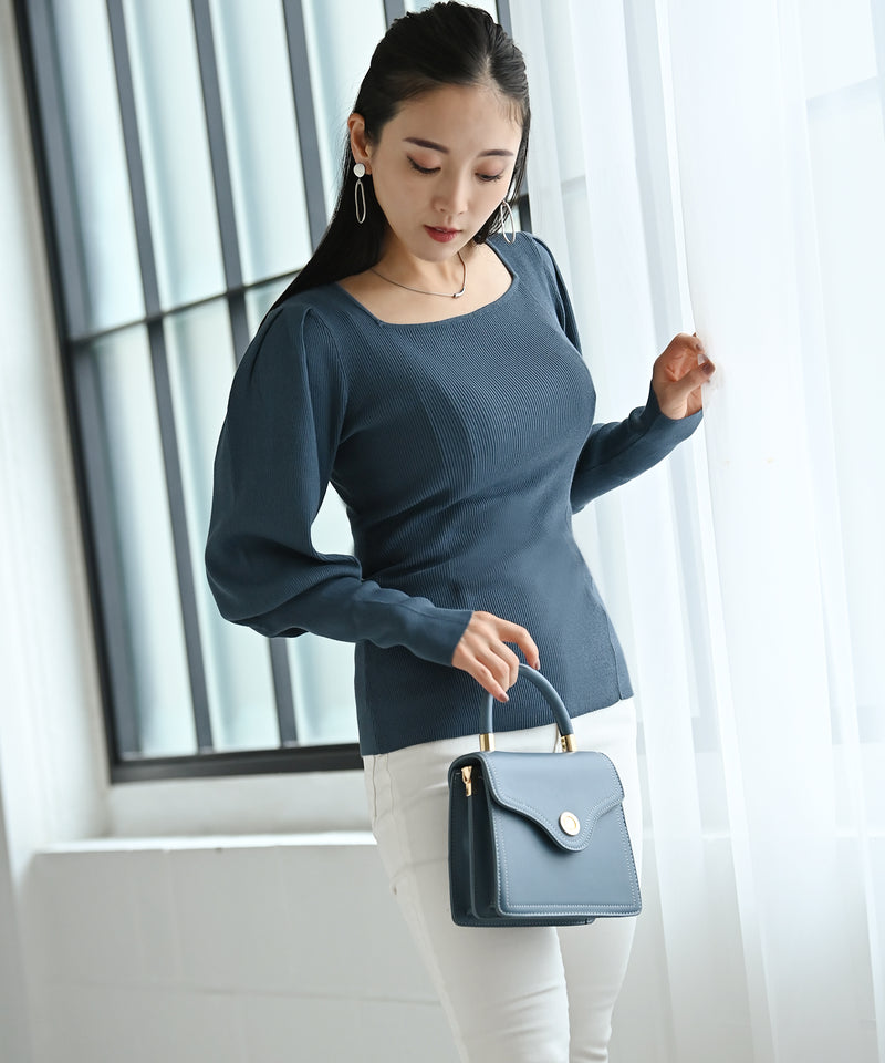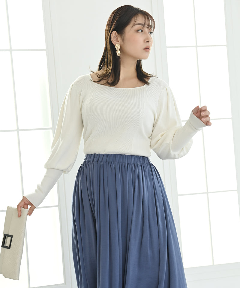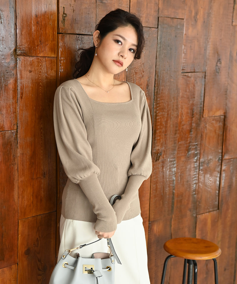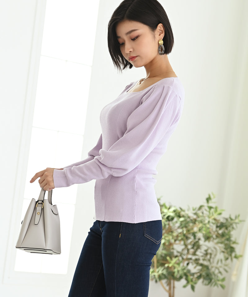 今年らしい印象のパフスリーブニットトップス。デコルテラインを綺麗に見せるスクエアネックと、ボリュームのあるパフスリーブが女性らしさを演出。ボトムスを選ばず、コーディネートの幅が広がる万能さも魅力です。インでもアウトでも着られる丈感にデザインし、レーヨンナイロンを原料としたストレッチヤーンで、着心地も快適に。 ■機能1HEART CLOSETの立体的な裁断でバストを丸く包み込みながらもアンダーバストからウエストはスッキリしたシルエットに。 ■機能2スッキリとしたスクエアネックはデコルテを綺麗に見せ、胸元も覗きづらいカッティングに設計。