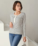 バストをしっかり包む形状で着こなしの難しかったヘンリーネックもヘルシーな印象を演出してくれます。