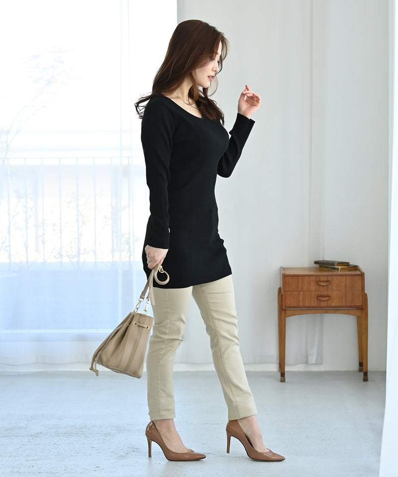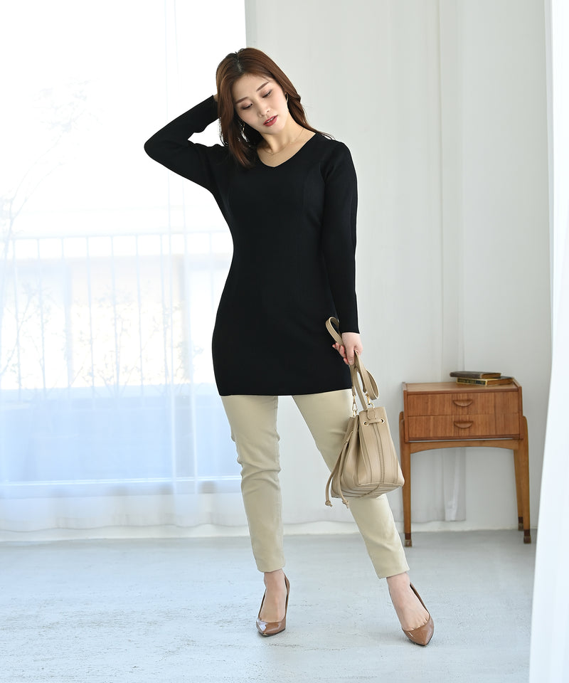 ベーシックで着回しの効くリブニットチュニック。豊富なカラー展開で、オフィスやおでかけなどあらゆるシーンに合わせて選んでいただけます。さらりとしたシャリ感のある糸を使用しており、春先はもちろん、夏のエアコン対策にも。ワンピースとしても、トップスにしても大活躍のニットチュニックです。1枚羽織るだけで、優美で上品な雰囲気に。コーディネートの幅がぐっと広がる1枚です。 ■機能1HEART CLOSETの立体的な裁断でバストを丸く包み込みながらもアンダーバストからウエストはスッキリしたシルエットに。 ■機能2羽織りとしてもトップスとしても着られるデザインにし、ビスコースを原料としたストレッチヤーンで着心地も快適に。■機能3ワンピースとしても、トップスにしても着られる着丈に。
