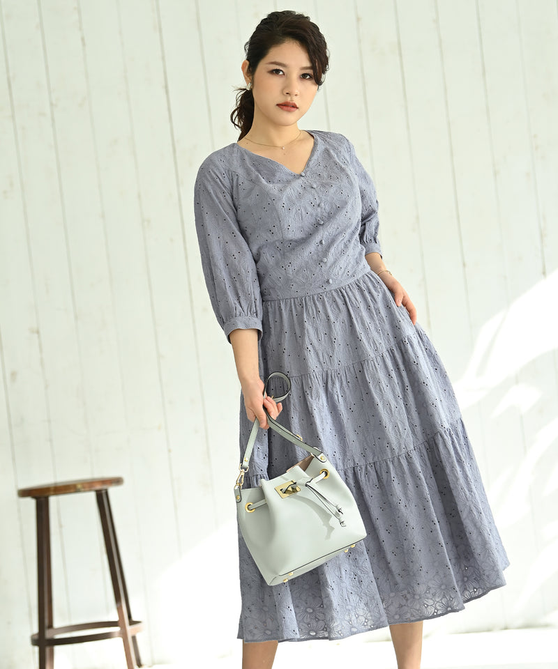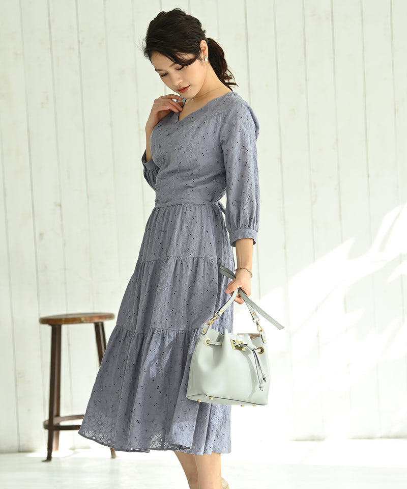 上質なコットンレースワンピースから、春らしいカラーが新登場。深すぎないVネックと長めの丈で抜け感を出し、甘すぎず大人な印象に。ウエストには共布コードを付けており、シルエットも自由自在。胸元のボタンはフェイクになっているのですきまがのぞいてしまう心配もありません。身頃部分には、肌触りの良いキュプラ裏地付き。1枚で春らしいコーディネートの完成する、上品ワンピースです。 ■機能1HEART CLOSETの立体的な裁断でバストを丸く包み込みながらもアンダーバストからウエストはスッキリしたシルエットに。 ■機能2デコルテをすっきり見せ、かがんでもバストが覗き辛い絶妙なVネック。 ■機能3両脇にはポケットをつけ、ユーティリティもプラス。