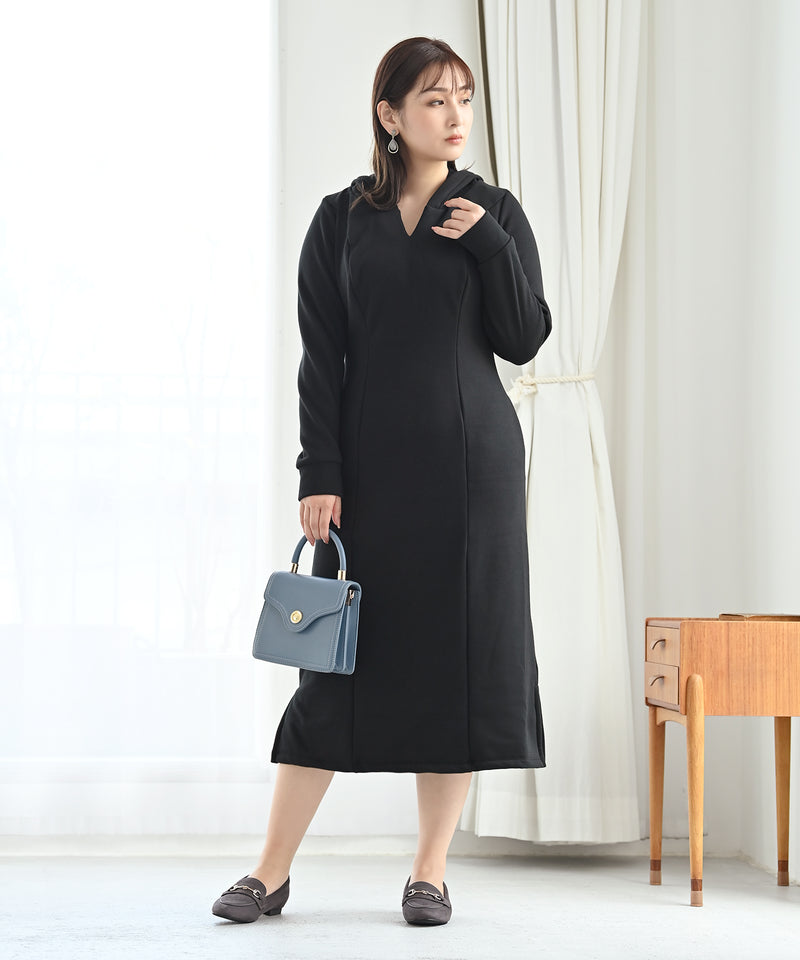 裏ボア素材の着る毛布のような印象のあったかワンピース。ストレッチ性に富みながらも身体に沿ったタイトシルエットで、すっきりとした印象に。両サイドの裾にはスリットが入っており、動きやすさも重視しました。コットン混で着心地も良く、おでかけにも、リラックスウェアとしても大活躍の1枚です。 ■機能1HEART CLOSETの立体的な裁断でバストを丸く包み込みながらもアンダーバストからウエストはスッキリしたシルエットに。 ■機能2ネックラインは詰まってみせない抜け感を演出しながらも、谷間が覗きづらい絶妙なVネック。 ■機能3両脇にはポケットをつけ、ユーティリティもプラス。