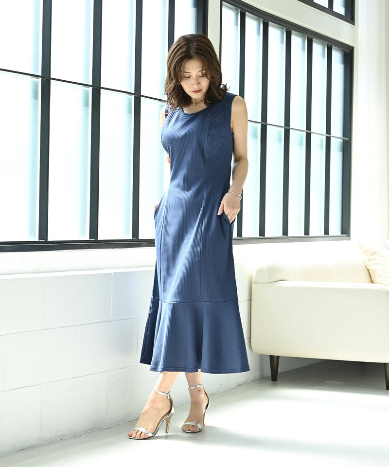 着心地の良いコットン混素材のノースリーブワンピース。トレンド感のあるマーメイドデザインで1枚着るだけで今年らしく女性らしい印象に、裾に広がるフレアなシルエットで足元もすっきり見え。おでかけにもリラックスウェアとしても、シーンを選ばず着ていただけます。■機能1HEART CLOSETの立体的な裁断でバストを丸く包み込みながらもアンダーバストからウエストはスッキリしたシルエットに。 ■機能2脇のラインから下着が見えないようにした脇高設計。 ■機能3両脇にはポケットをつけ、ユーティリティもプラス。 ■機能4マーメイドデザインで足元のシルエットまで美しく。
