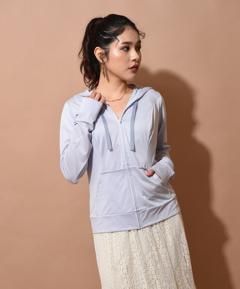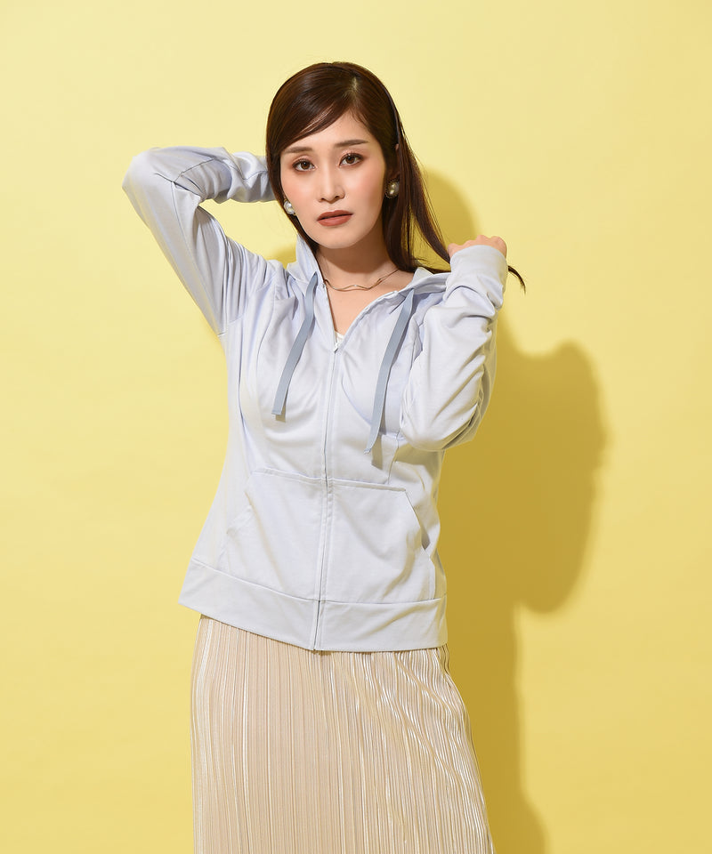 シンプルでベーシックなフード付きパーカーから、新色が登場。UVカット90%、接触冷感の機能素材を使用し、暑い夏でも快適にお過ごしいただけます。立体裁断で胸元はゆったり、ウエストは美しいシルエットに。袖口には指の通せる指穴を施し、手先までをしっかりカバーします。首元にはグログランのコードをつけ、カジュアルになりすぎず大人の印象に。※こちらの商品はサンシェードフーディーと同アイテムです。 ■機能1HEART CLOSETの立体的な裁断でバストを丸く包み込みながらもアンダーバストからウエストはスッキリしたシルエットに。 ■機能2UVカット90%、接触冷感の機能素材を使用し、暑い夏でも快適に。■機能3袖口には指の通せる指穴を施し、手先までをしっかりカバー。