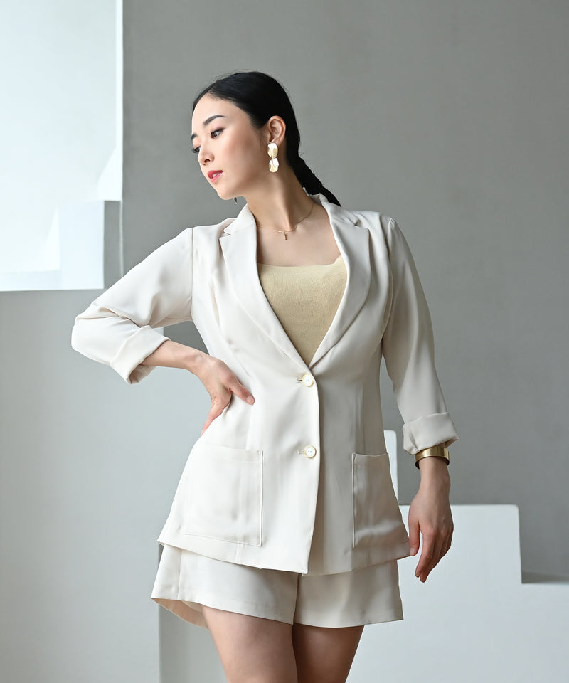 さらりとしたウォッシャブル素材のテーラードジャケット。UVカット90%の機能素材を使用し、裏地をつけていないので暑い季節でも快適にお過ごしいただけます。程良い落ち感となめらかな肌触り、長すぎない丈感でカジュアルにもエレガントにも着こなせます。同素材のセットアップストレートパンツ、セットアップショートパンツと組み合わせれば、セットアップとしてお使いいただけます。こちらの商品はサマーロングジャケットと同素材です。 ■機能1HEART CLOSETの立体的な裁断でバストを丸く包み込みながらもアンダーバストからウエストはスッキリしたシルエットに。 ■機能2UVカット90%の機能素材を使用で、日差しの強い季節も安心。【Attention】本商品は予約商品です。通常商品と予約商品を同時にご購入いただいた場合は、商品はすべてそろい次第の発送となりますので、ご注意ください。