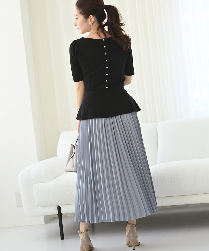 バックパールペプラムニット