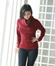 くたっとしたオフタートルが首元をすっきりさせ、立体裁断でバストからウエストまでを美しく見えるシルエットに。